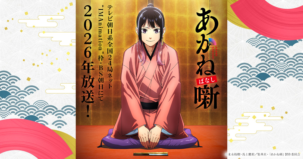『あかね噺』は、末永裕樹(原作)・馬上鷹将(作画)が「週刊少年ジャンプ」で連載中の落語マンガを原作としたTVアニメだ。2026年4月4日(土)夜11時30分より、テレビ朝日系全国24局ネット”IMAnimation”枠で放送スタート。ABEMAとNetflixでは放送直後に先行配信が実施され、Amazon Prime Videoなど各配信サービスでも視聴できる。